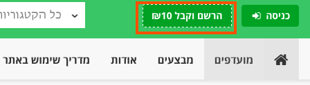 מיד עם ההרשמה תקבלו 10 שקלים במתנה מהאתר, רק בגלל שנרשמתן!