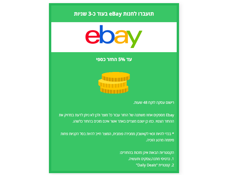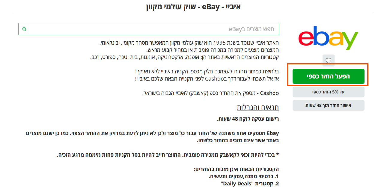 | העמוד של ebay בקאשדו- הסברים והפעלת החזר כספי |