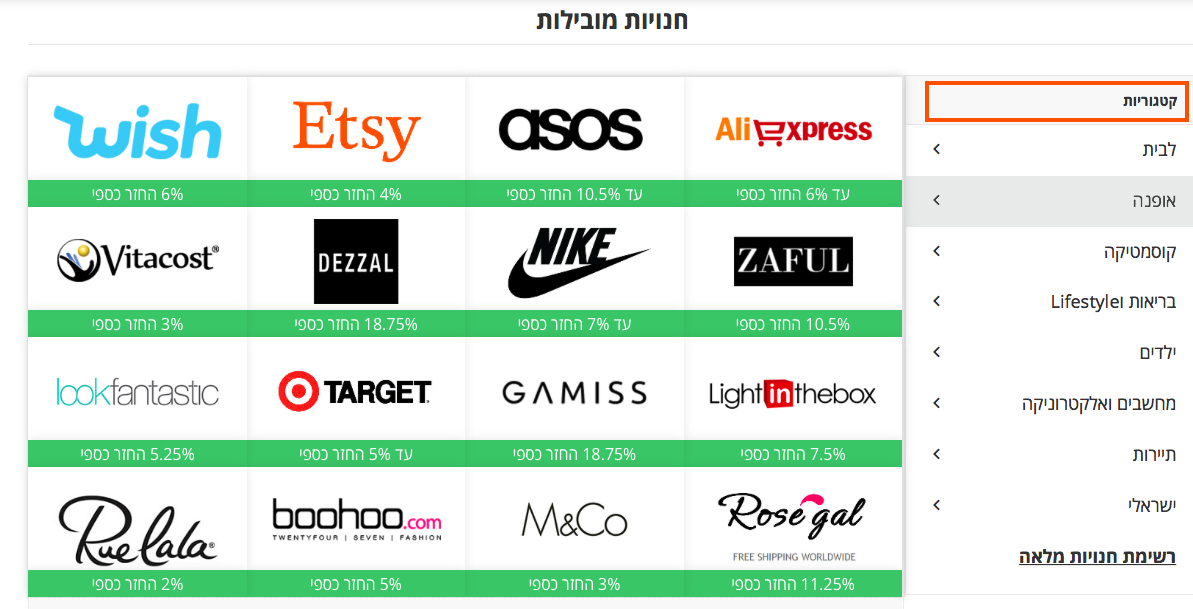 בשלב הבא, יש למצוא את האתר שממנו אתן רוצות לעשות קניות. ניתן להעזר בתפריט הקטגוריות (לבית, אפנה, קוסמטיקה, ילדים, מחשבים ועוד), או להשתמש בתיבת החיפוש בראש האתר.